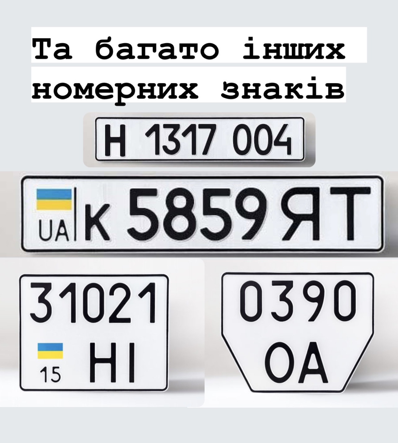 Зразки готових номерних знаків виготовлених по ДСТУ